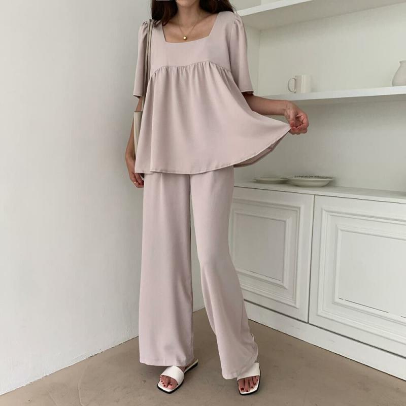 여자 반팔 프릴 블라우스 슬랙스 세트