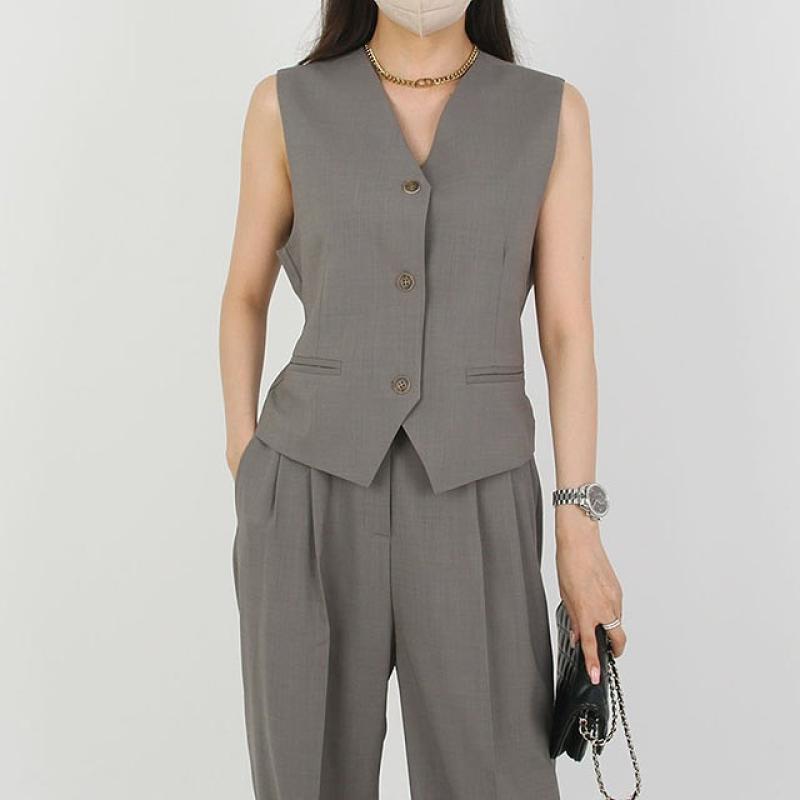 홑겹으로 얇고 가벼워서 한여름 시원하게 시크하게 즐기기 좋을 조끼 투피스입니다.