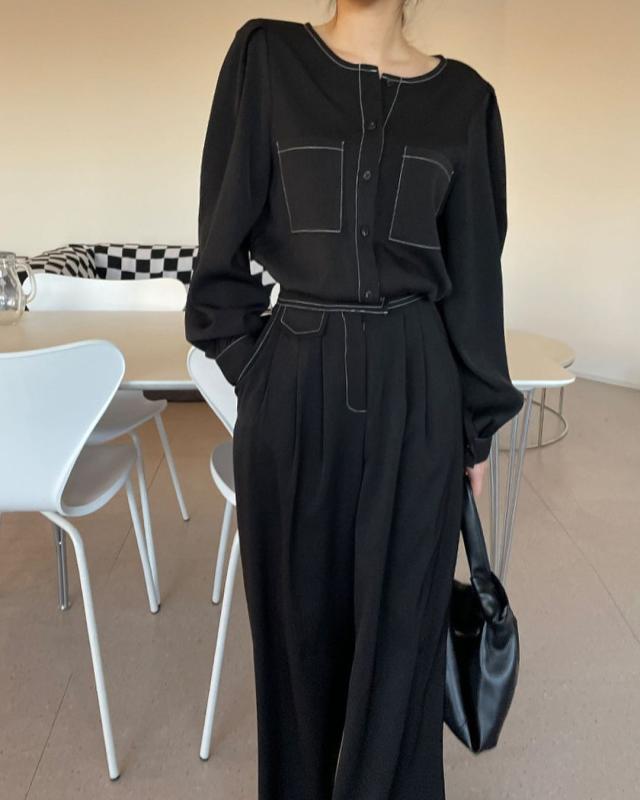 블라우스 슬랙스 셋업이에요🖤 요것도 코디 뚝딱