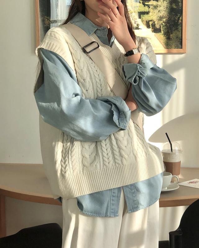 청남방 청남방코디 여자청남방코디 니트조끼 니트조끼코디 봄데일리룩 봄데일리룩코디