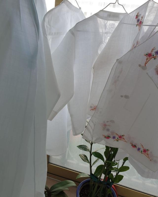 할머니, 할아버지 시절에는 모시로 직접 옷을 만들어 입었다고 한다. 우리 외할머니가 주로 입던 모시옷도 메이드 인 외할머니이다. 연세가 많고 병원에서 생활하시기에 외갓집에서는 할머니 물품을 오래전 정리했다. 그중 외할머니가 손수 만든 흰모시 저고리 하나를 내가 갖게 되었는데, 사실 누군가 하늘나라로 간다면 그 사람을 추억할 수 있는 물건 하나는 꼭 소장하고 싶었기 때문이다. 외할머니가 돌아가시고 남은 할머니표 모시 저고리. 지금은 매년 여름마다 꺼내 입는다. 웬만한 여름 옷보다 시원해서 입을 때마다 항상 상쾌하고 기분이 좋다. 거기다 나에게는 남다른 의미가 있으니 입을 때마다 떠오르는 할머니와의 추억들도 다시 상기시켜본다.