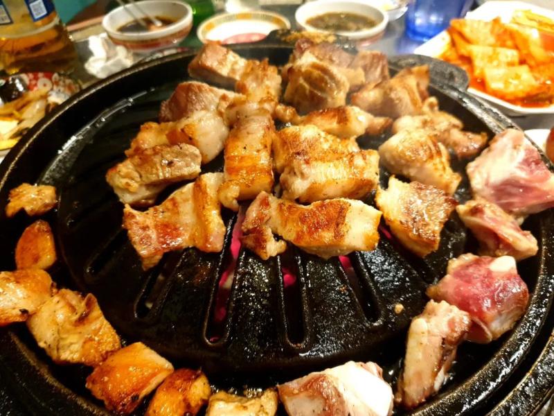 무쇠팬에 숯불이라 그런지 화력이 어마어마했다(이게 고기맛 비결일수도)