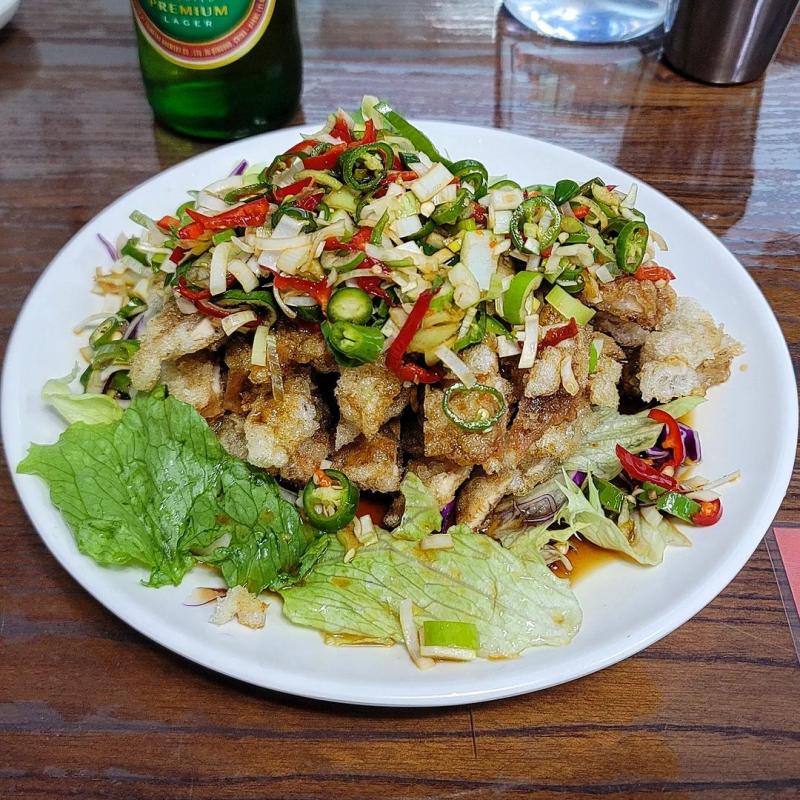 산왕반점에 도착한 우리는 먹기 위해 갔던 '멘보샤'와 닭냉채 요리인 '쇼우기' 그리고 닭 튀김 요리인 '깐풍기'를 시켰다. 이후에도 추가로 더 뭘 시켜먹었는데, 그 사진은 보이지 않아서 안타까움 1g 추가.
