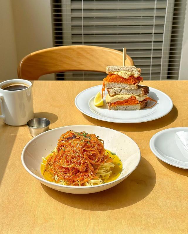 후무스랑 당근 라페가 샌드되었는데 빠작한 담백한 깜빠뉴에 아작아삭 새콤함이 강한 라페를 고소하니 묵직하게 후무스가 잡아준다.