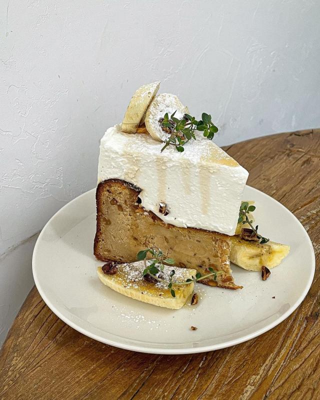 나나피넛케이크 (8500원) 밀우에는 다양한 케이크가 있지만 먹어본 케이크가 많아서 새로운 케이크를 도전해봤습니다. 바나나가 곁들여진 땅콩케이크입니다. 땅콩을 좋아하신다면 맛있겠지만 아니라면 비추입니다. 밀우 케이크 특유의 꾸덕한 식감이 맛있었습니다.
