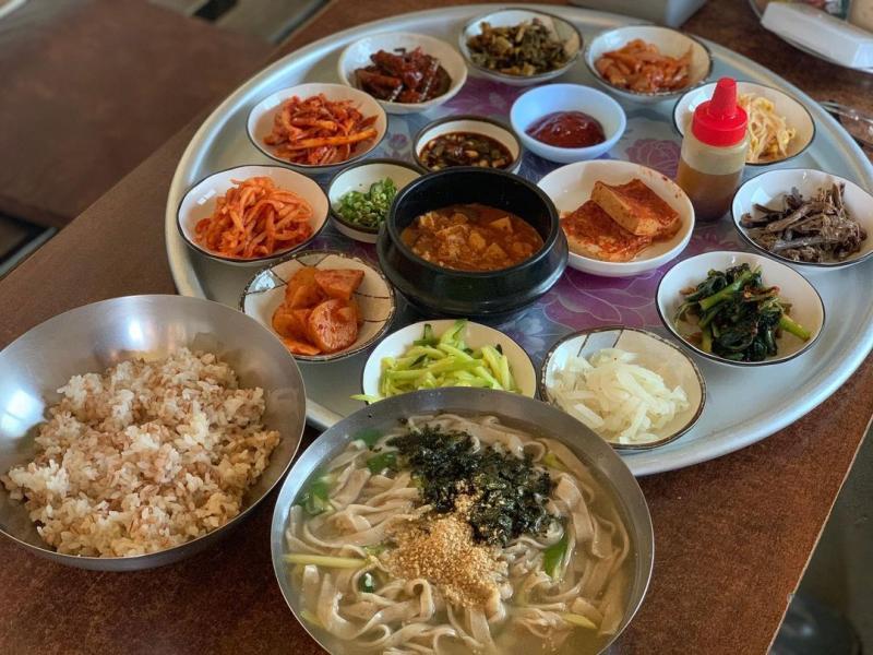 모든 메뉴가 다 5천원 균일가인 레트로 갬성의 찐맛집!!! 파크로쉬 에서 10분거리에 있는 🤍 여긴 진짜 대강추하고싶은곳!!! 시골인심으로 밥도 한가득 상도 한가득 채워주시는데 둘이 다먹어도 만원...🫣 이렇게 장사하셔도 되려나 싶을정도로 너무 푸짐한데, 맛도 진짜.... 할머니집가면 먹던 그맛❣️ 들어갈때부터 먹는 내내 챙겨주시는 할무니 할아부지 정으로 더 따뜻한 식사를 할 수 있는 곳!!! 보리밥 은 무적권 시켜야하구 콧등치기국수 도 가게마다 맛이 다르니 비교하면서 먹는 재미도 쏠쏠😋
