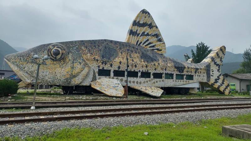 2: 나전역카페 - 정선역과 아우라지역 사이의 작은 간이역. 지금은 정선아리랑 열차가 나전역에 하루 두 번 멈춘다.